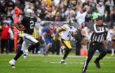 - Oakland might have their hands on something with Terrelle Pyror. He ran for 93 yard and a touchdown on the first play from scrimmage against Pittsburgh this past weekend. The direct beneficiary of him under center has been Darren McFadden. He had his first two touchdown performance since 2011 and with the option threat of Pyror teams will no longer be able to stack the line. I really like them going forward especially in underdog situations.